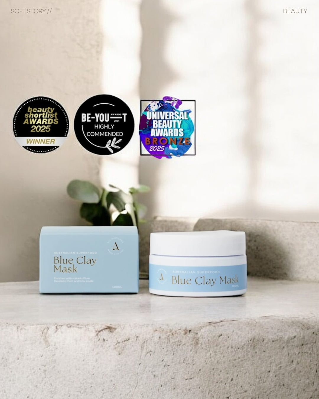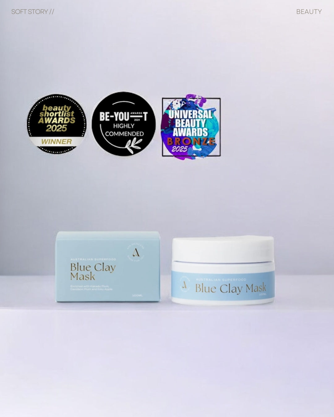 以源自澳洲大地的天然能量為靈感,結合藍礦泥 (Blue Clay) 與高嶺土 (Kaolin Clay) 的礦物淨化力,以及 戴維森李 (Davidson Plum)、卡卡杜李 (Kakadu Plum)、鴯鶓蘋果 (Emu Apple) 等澳洲原生超級食物精萃,為肌膚注入豐富營養與保濕修護能量。