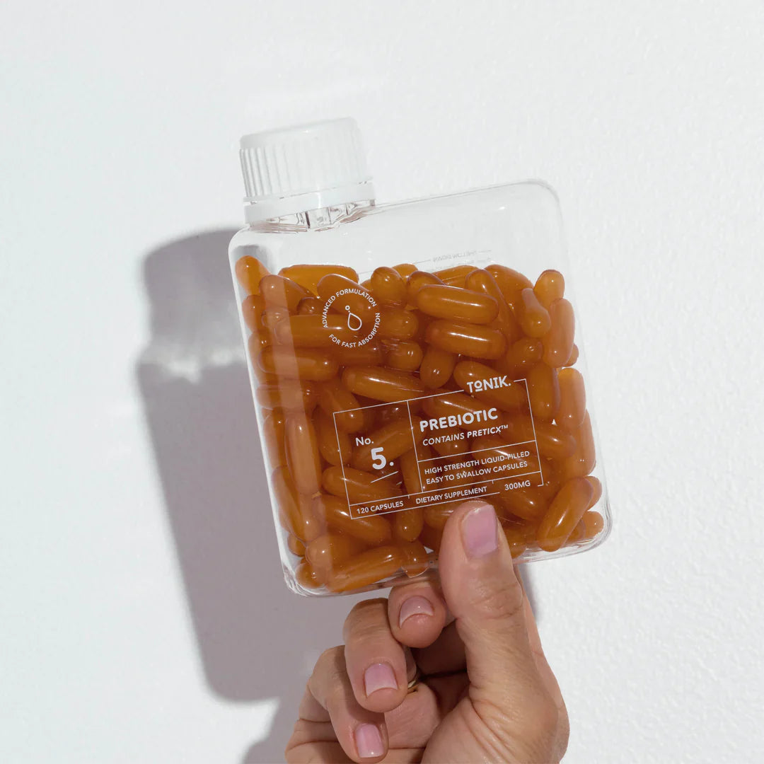 這種組合的產品能夠以優雅的方式提供排毒的好處,幫助身體保持健康和純淨。過過溫和的方法和自然的身體機制來實現身體清潔和排毒,以達到身體健康和平衡的目標。另外,由於我們的身體無法自行形成益生元,因此我們需要從飲食或補充劑補充。Tonik No.5 Prebiotic Capsules 中的專利益生元PreticX®,經過臨床證明的選擇性益生元複合物有助於刺激及至增加腸道中的健康細菌數量。