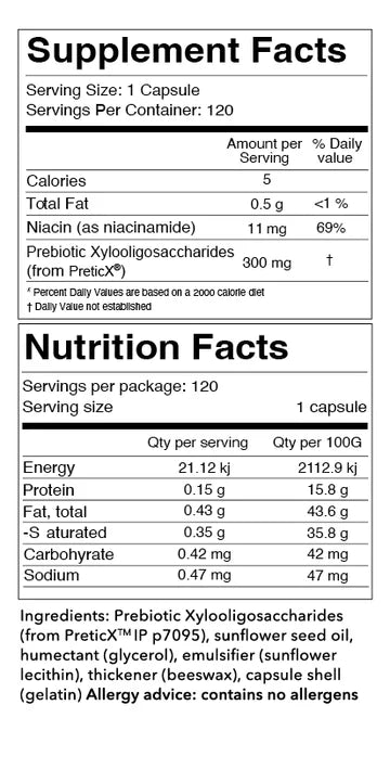 益生元是一種特殊的纖維質,它能夠為益生菌提供生長繁殖所需的營養。益生菌是一種對人體有益的細菌,在腸道中起著重要的作用。益生元膠囊中的益生元低聚木糖能夠促進腸道健康,維持腸道菌群的平衡。這有助於提高消化系統的功能,增強免疫系統,改善腸道運動和吸收營養的能力。